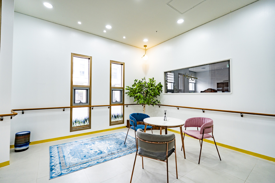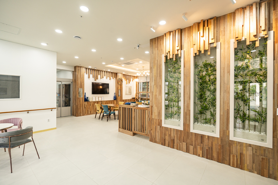 깨끗한 생활실과, 어르신들의 재활을 돕는 워크메이트, 물리치료, 피톤치드룸, 족욕 등 전문적인 부대시설을 갖춘 요양원입니다.