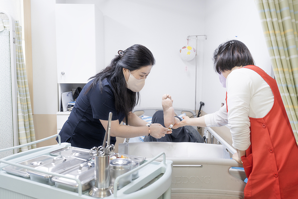 오랜 경력을 갖춘 전문 인력이 어르신을 돌보고 있는 간호전문요양원으로서