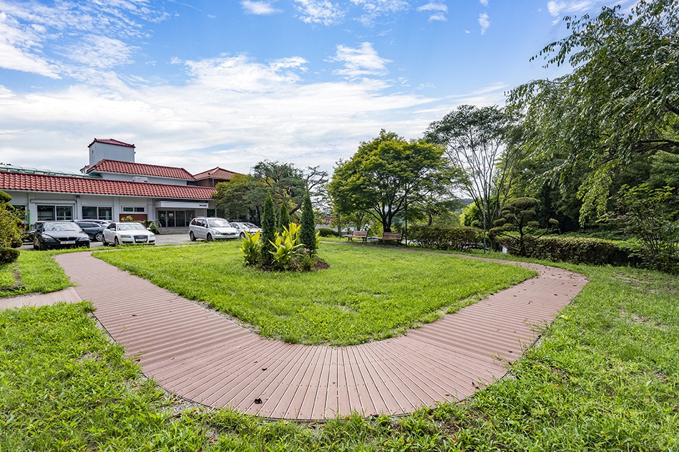 걷기와 운동이 가능한 야외산책로 시설의 요양원